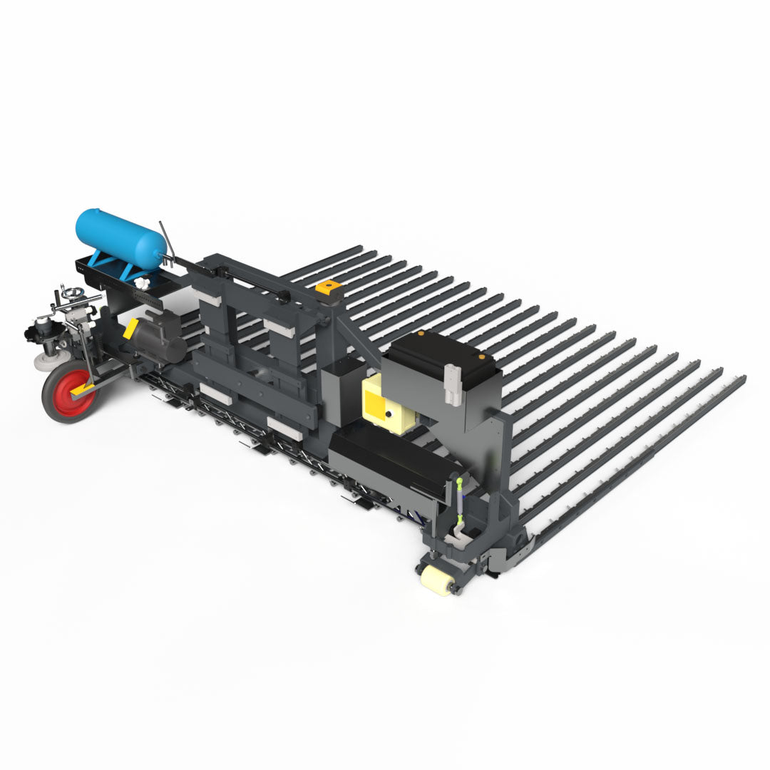 Zo is het mogelijk in verband potten uit te zetten op een vaste afstand terwijl de heftruck rijdt.